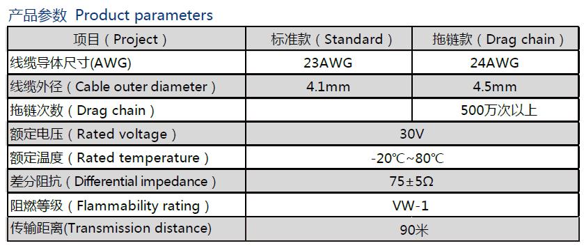 - According to different use environments, there are standard and towline cables available for customers to choose from, and the towline cable has passed more than 5 million towline tests; There are multiple combinations of connectors at both ends;