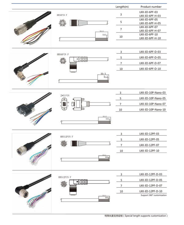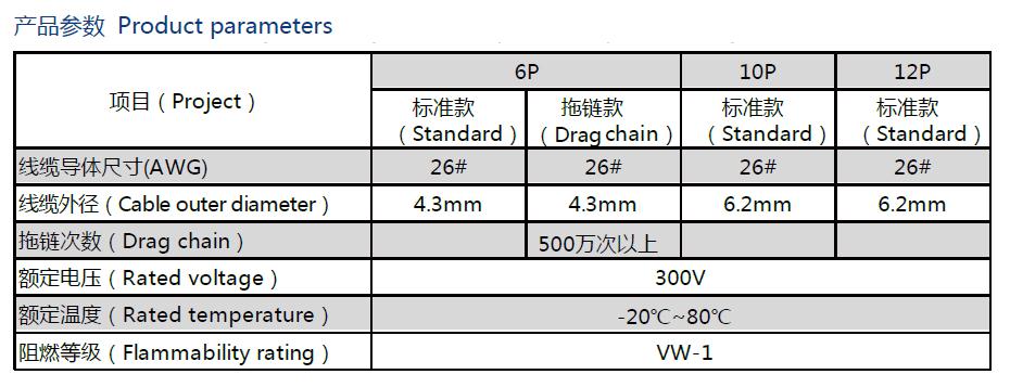 - 根據使用環境,有標準和拖鏈線纜供選擇,拖鏈線纜通過1000萬次以上拖鏈測試;